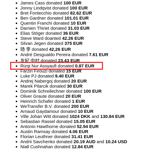 Gambar 8. 1-2 bulan kemudian, nama saya masuk ke dalam daftar donatur di halaman https://suckless.org/donations/
